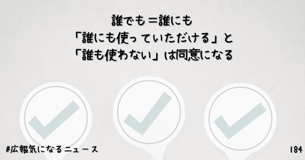 誰でも=誰にも。「誰にも使っていただける」と「誰も使わない」は同意になる 184