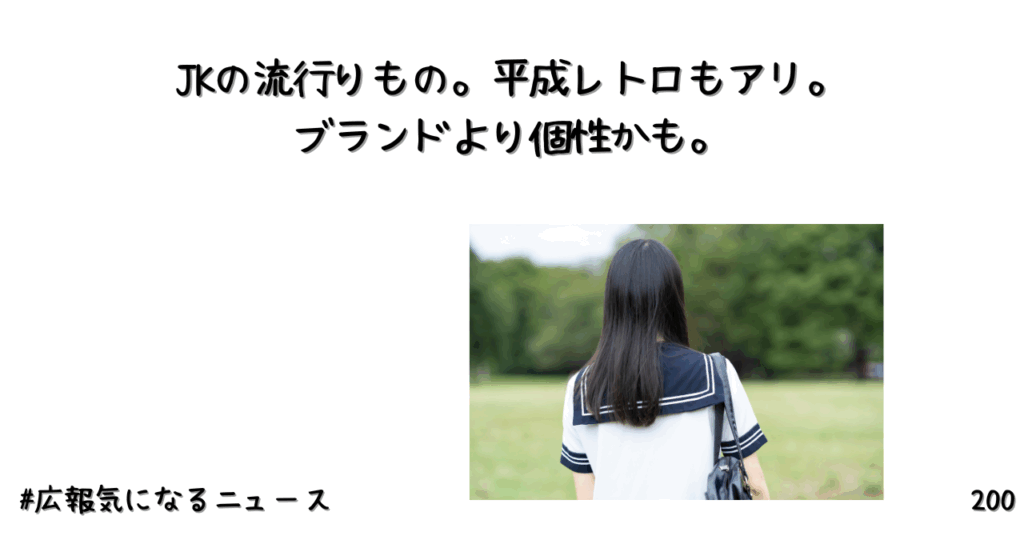 JKの流行りもの。平成レトロもアリ。ブランドより個性かも。200