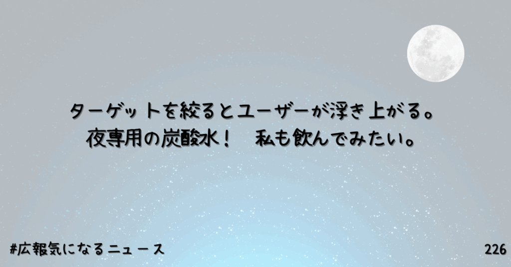 ターゲットを絞るとユーザーが浮き上がる。夜専用の炭酸水! 私も飲んでみたい。226