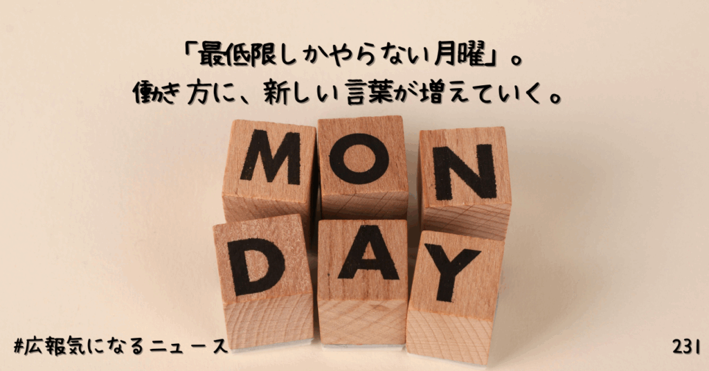 「最低限しかやらない月曜」。働き方に、新しい言葉が増えていく。231