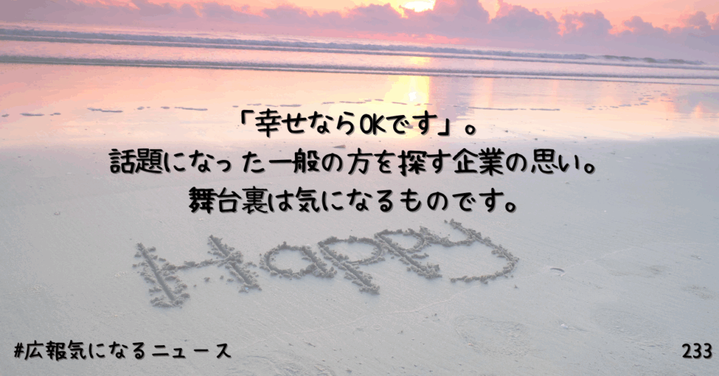 「幸せならOKです」。話題になった一般の方を探す企業の思い。舞台裏は気になるものです。233