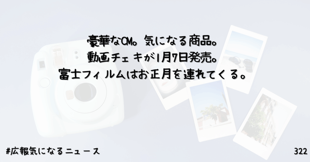 豪華なCM。気になる商品。動画チェキが1月7日発売。富士フィルムはお正月を連れてくる。322