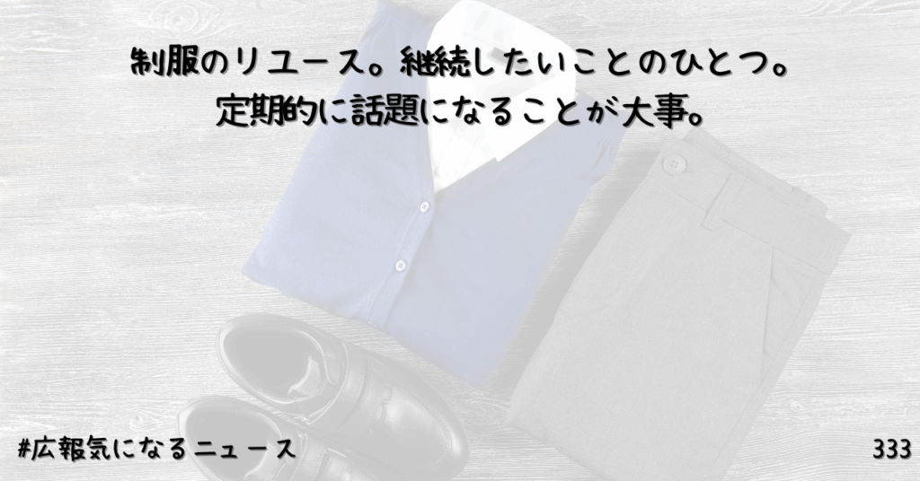 制服のリユース。継続したいことのひとつ。定期的に話題になることが大事。333