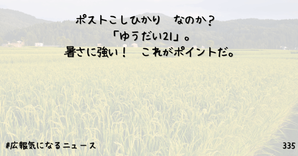 ポストこしひかり なのか? 「ゆうだい21」。暑さに強い! これがポイントだ。335