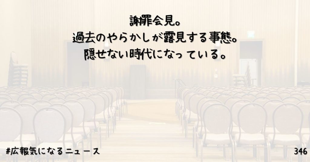 謝罪会見。過去のやらかしが露見する事態。隠せない時代になっている。346