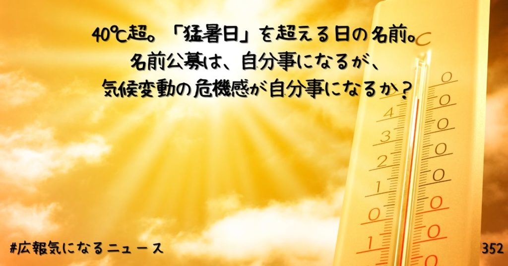 40℃超。「猛暑日」を超える日の名前。名前公募は自分事になるが、気候変動の危機感が自分事になるか? 352